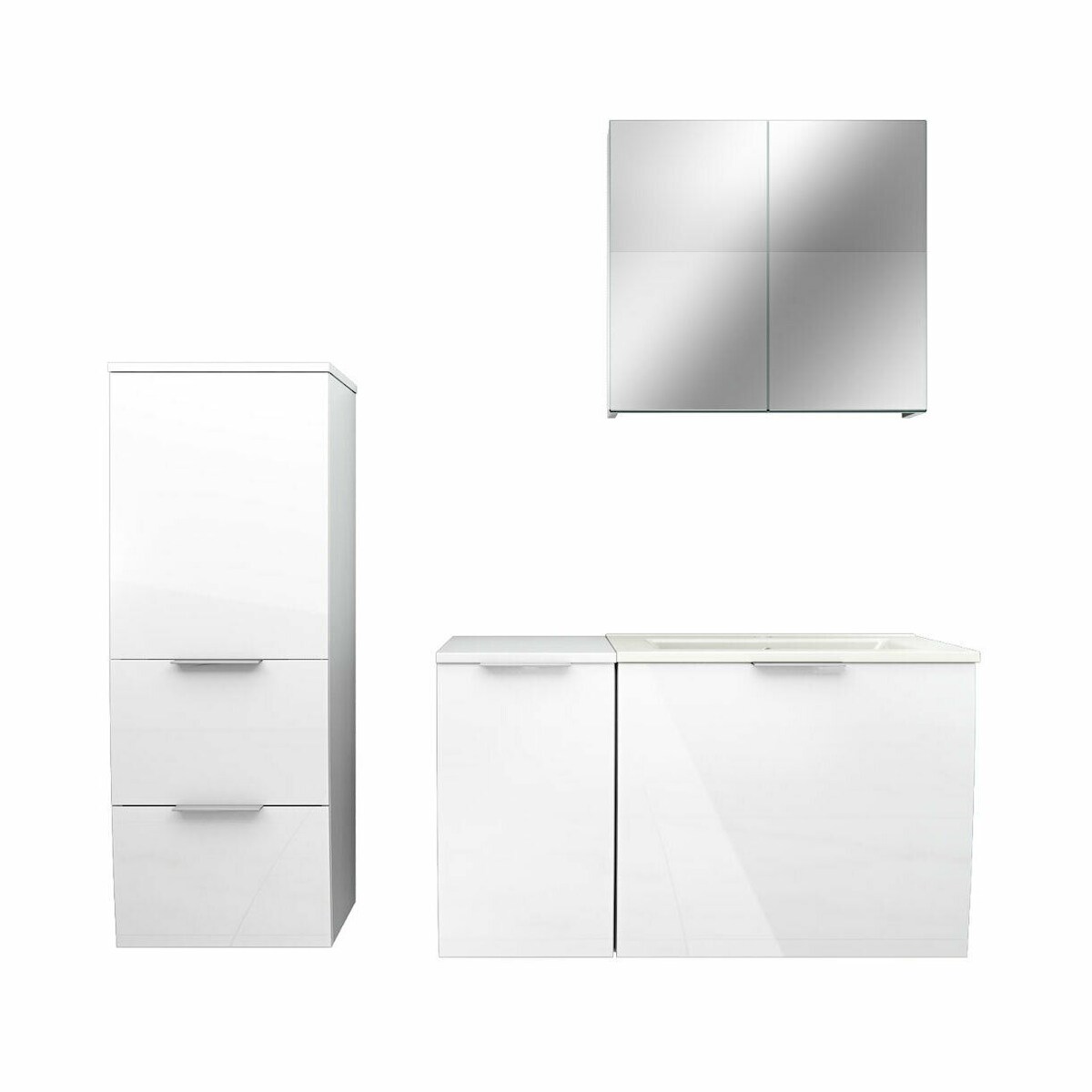 Badmöbel-Set INOSIGN "FLORENZ, TOPSELLER, 3-teilige Badkombination, hochwertige MDF-Front", weiß (weiß, weiß hochglanz), B:135cm H:185cm T:32cm, Holzwerkstoff, MDF, Kastenmöbel-Sets, Badmöbel-Set, Bad-Kombination, Bad-Möbel, Badezimmer, Kombination, Kombi