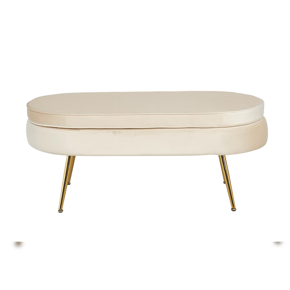 SalesFever Sitzpouf | oval | Bezug Samt-Stoff beige | Gestell Metall goldfarben | B 99 x T 44 x H 40 cm