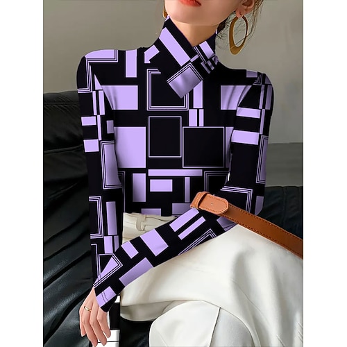 Per donna Maglietta Grafico Geometrico Elegante Vintage Classico Manica Lunga Collo Alto Collo asimmetrico Top Regolari Quotidiano Stampato A Strati Blu Nero Rosa Viola Verde Primavera Autunno Inverno