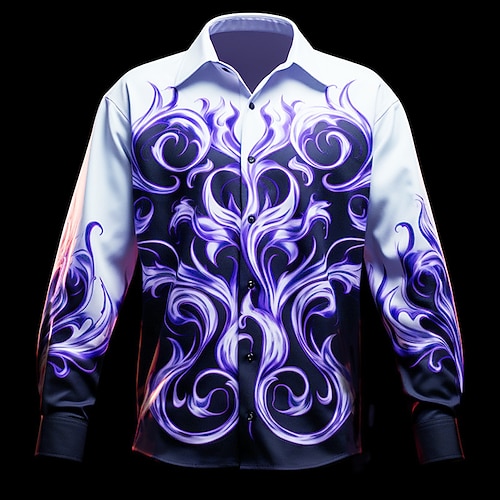 Per uomo Geometrica Fiamma Camicia Camicia con bottoni Manica lunga Artistico Da tutti i giorni Per uscire Autunno inverno Collo ripiegabile Stampa Bottone giù Grigio - viola Blu Viola Arancione