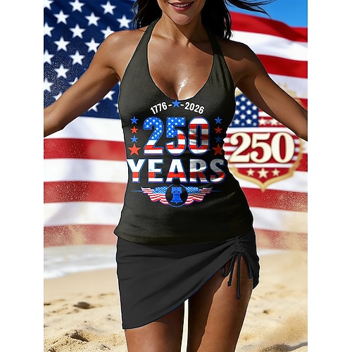 Per donna Costumi da bagno Tankini Gonna Costume da bagno Elegante Vacanza Grafico Bandiera Tuffo Senza Maniche Costumi da bagno