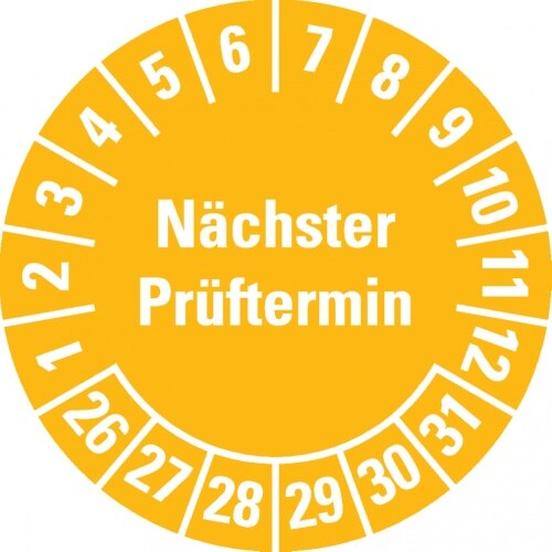 Dreifke® Prüfplakette Nächster Prüftermin 26-31, gelb, Schachbrettfolie, Ø 30mm, 18 Stk.