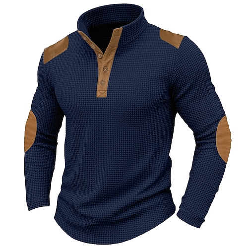Per uomo Maglietta Maglia Henley a nido d'ape Camicie da uomo con toppe sui gomiti Manica Lunga Blocco di colori Moda Designer Essenziale Patchwork Collo alla coreana Henley Casuale Vacanza Streetwear