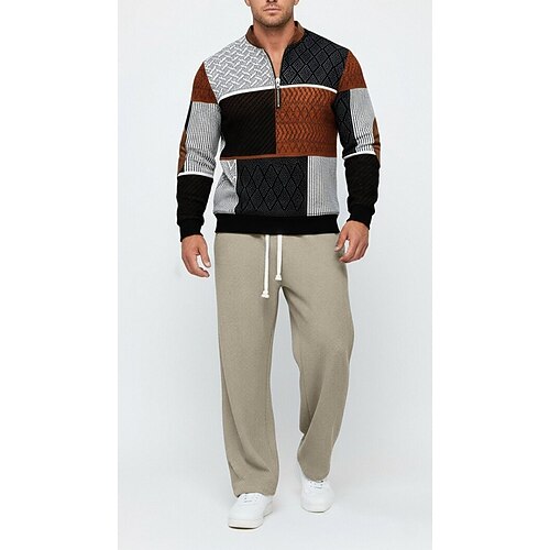 Per uomo Maglia Felpa con zip corta Nero Marrone Mezza zip Blocco di colori Mucca Patchwork Tasca Sport Outdoor Quotidiano Ferie Poliestere Vintage Casual Pile sottile Autunno Inverno