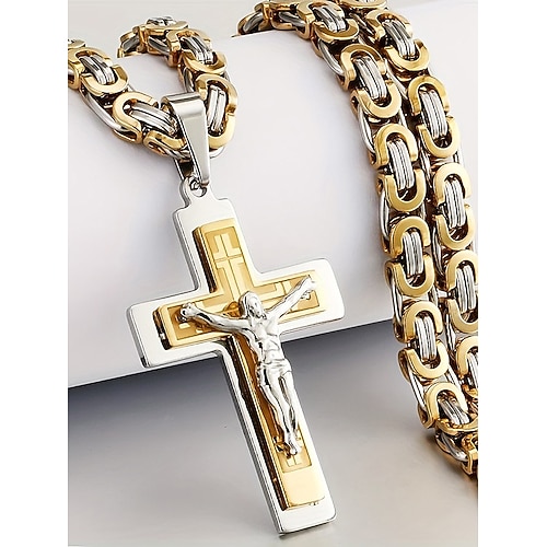 collana da uomo con croce in acciaio inossidabile, ciondolo religioso con catena, disponibile in più colori, materiale in acciaio inossidabile resistente, perfetto per occasioni informali e formali