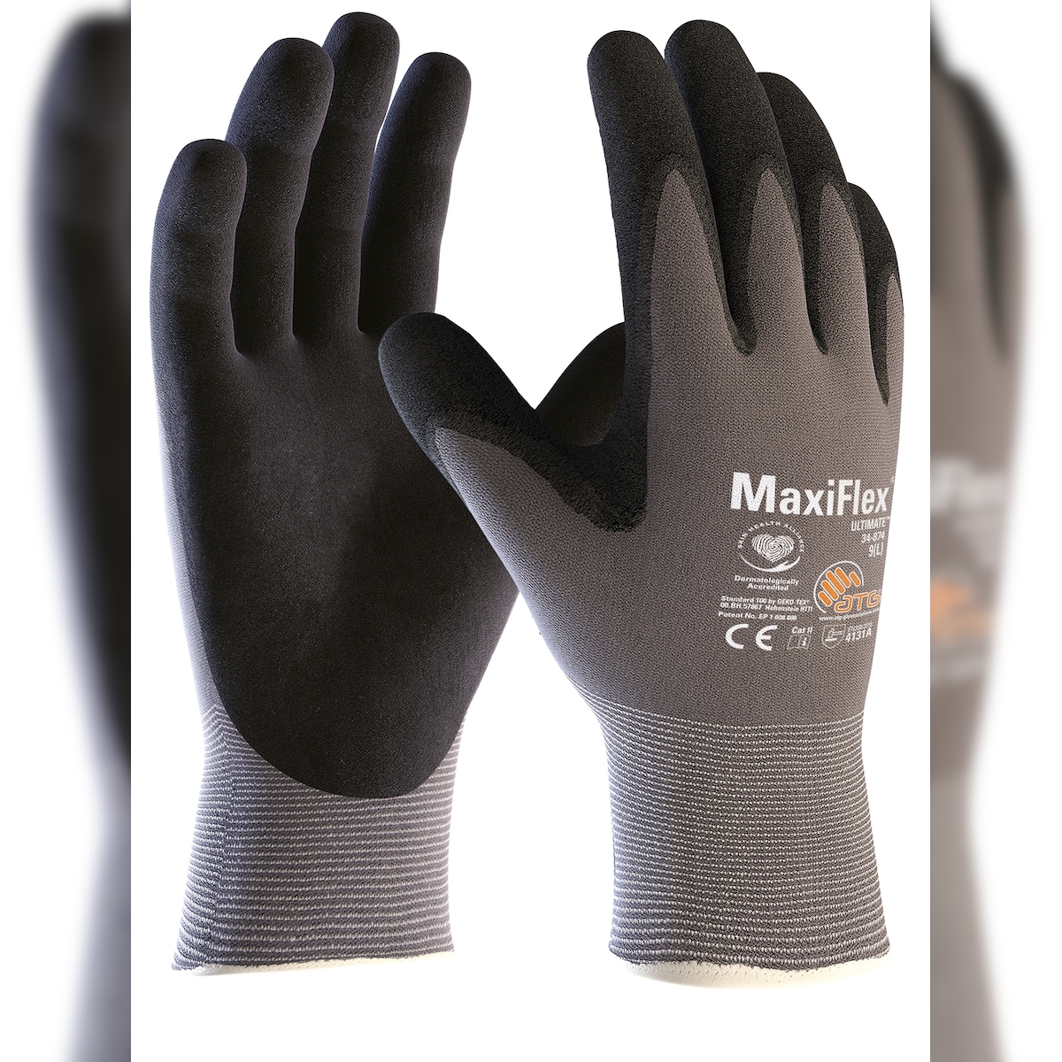 6 Paar Maxiflex Ultimate Nylon-Strickhandschuhe grau/schwarz, ATG 34-874 - Größe 7 (S)