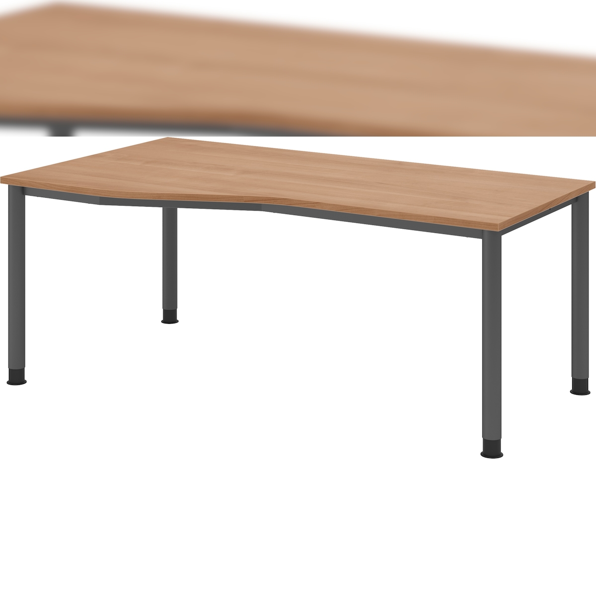 bümö höhenverstellbarer Schreibtisch H-Serie 180x100 cm in Nussbaum, Gestell in Graphit - PC Tisch für's Büro manuell höhenverstellbar, Computertisch