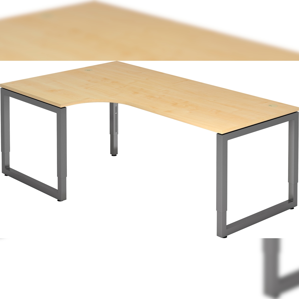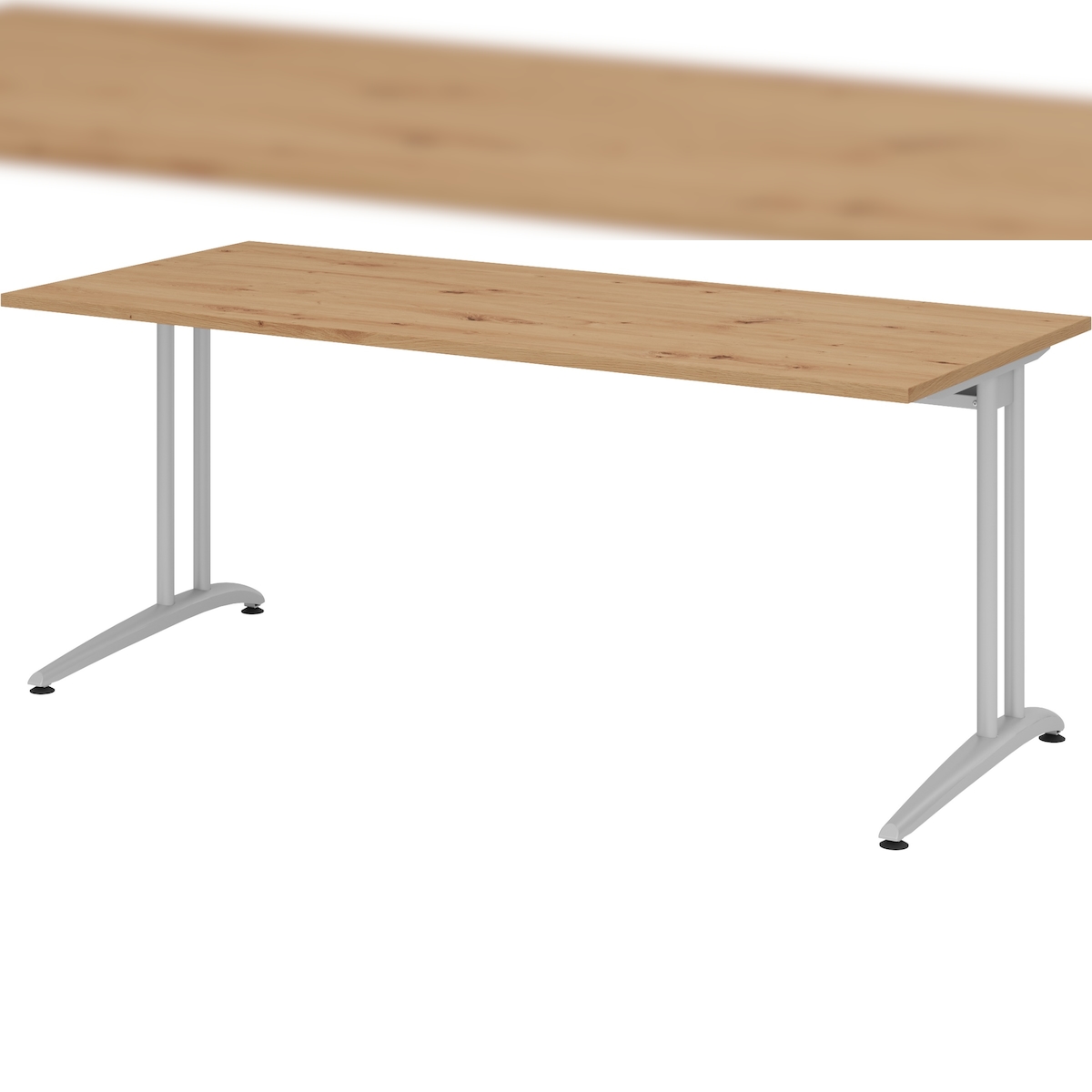 bümö Schreibtisch groß, N-Serie 200x100 cm, Tischplatte aus Holz in Eiche, Gestell aus Metall in Silber - PC Tisch, großer Computertisch für's Büro,