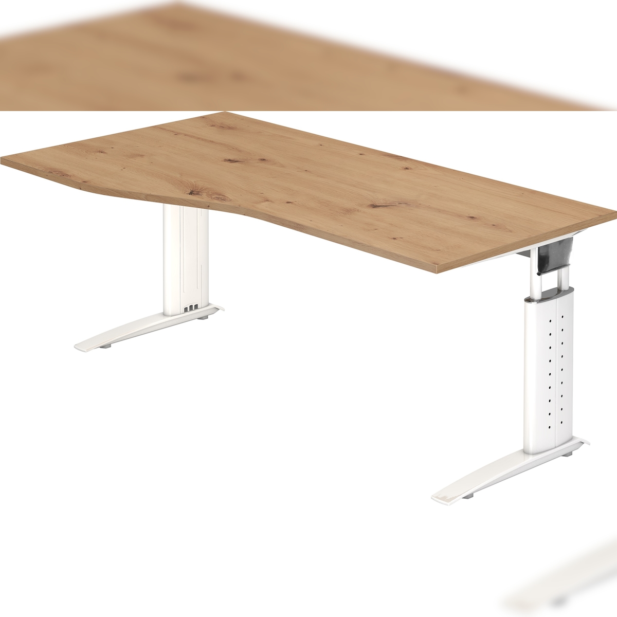 bümö höhenverstellbarer Schreibtisch U-Serie 180x100 Asteiche, Gestell in weiß - großer PC Tisch für's Büro manuell höhenverstellbar, Computertisch