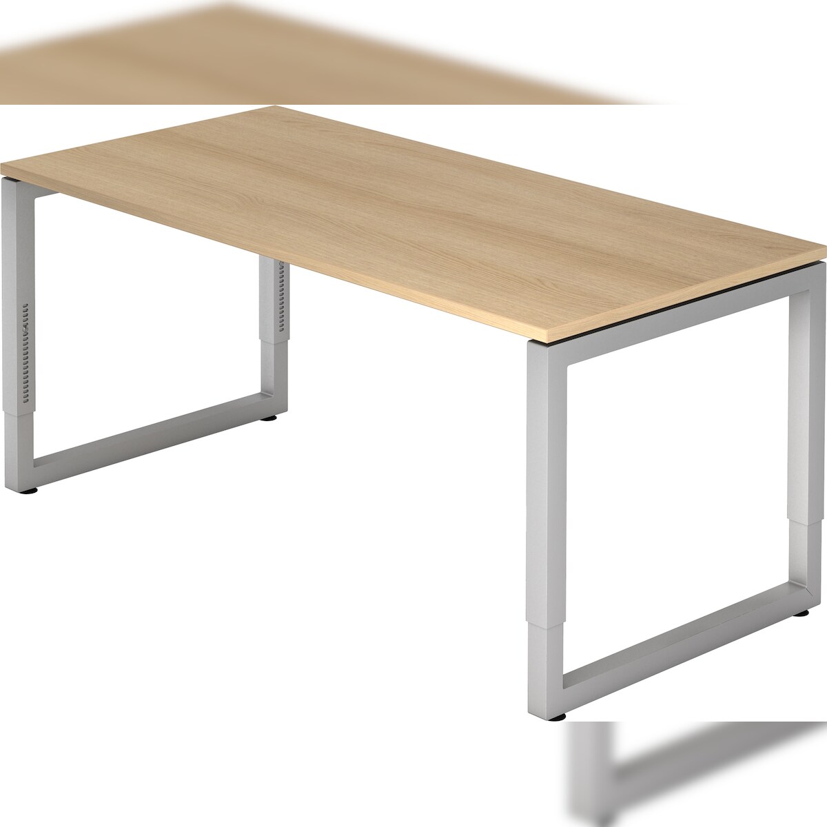 bümö höhenverstellbarer Schreibtisch R-Serie 160x80 cm in Eiche, Gestell in Silber - PC Tisch für's Büro manuell höhenverstellbar, Computertisch