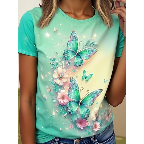 Per donna Maglietta Floreale Grafico Vintage Elegante Classico Manica Corta Girocollo Top Regolari Quotidiano Uscire Weekend Stampato Verde chiaro Estate