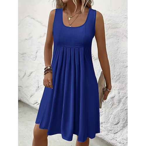 Per donna Mini Abito Abito Estivo Casual Quotidiano Vestibilità comoda Semplice Senza Maniche Collo a U Nero Blu reale Viola Verde Estate