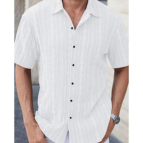 Per uomo Camicia Camicia Estiva Camicia casual Camicia da Spiaggia Camicia con Bottoni Nero Bianco Marrone Manica Corta Semplice Colletto a Camicia Vacanza Camicia hawaiana Abbigliamento Poliestere