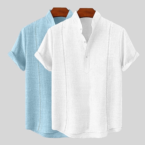 Per uomo Camicia camicia di lino Camicia con colletto a fascia Camicia estiva Abbigliamento mare Camicia hawaiana Tinta unica Da mare Curise Nero Bianco Giallo Rosa Manica corta Con colletto