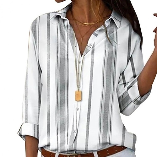 Per donna Camicia Blusa A righe Vintage Elegante Manica Lunga Colletto a Camicia Top Regolari Quotidiano Ferie Uscire Bottoni Blu Giallo Rosso Grigio Estate Primavera Autunno