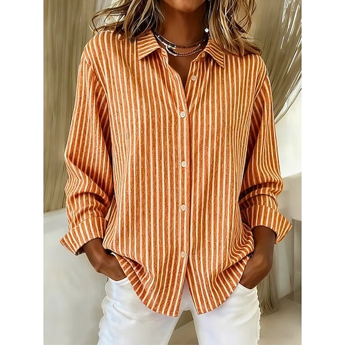 Per donna Camicia Blusa A righe Vintage Elegante Casual Manica Lunga Colletto a Camicia Top Regolari Quotidiano Bottoni Stampato Rosso Marrone chiaro Blu Arancione Grigio Primavera Autunno Inverno