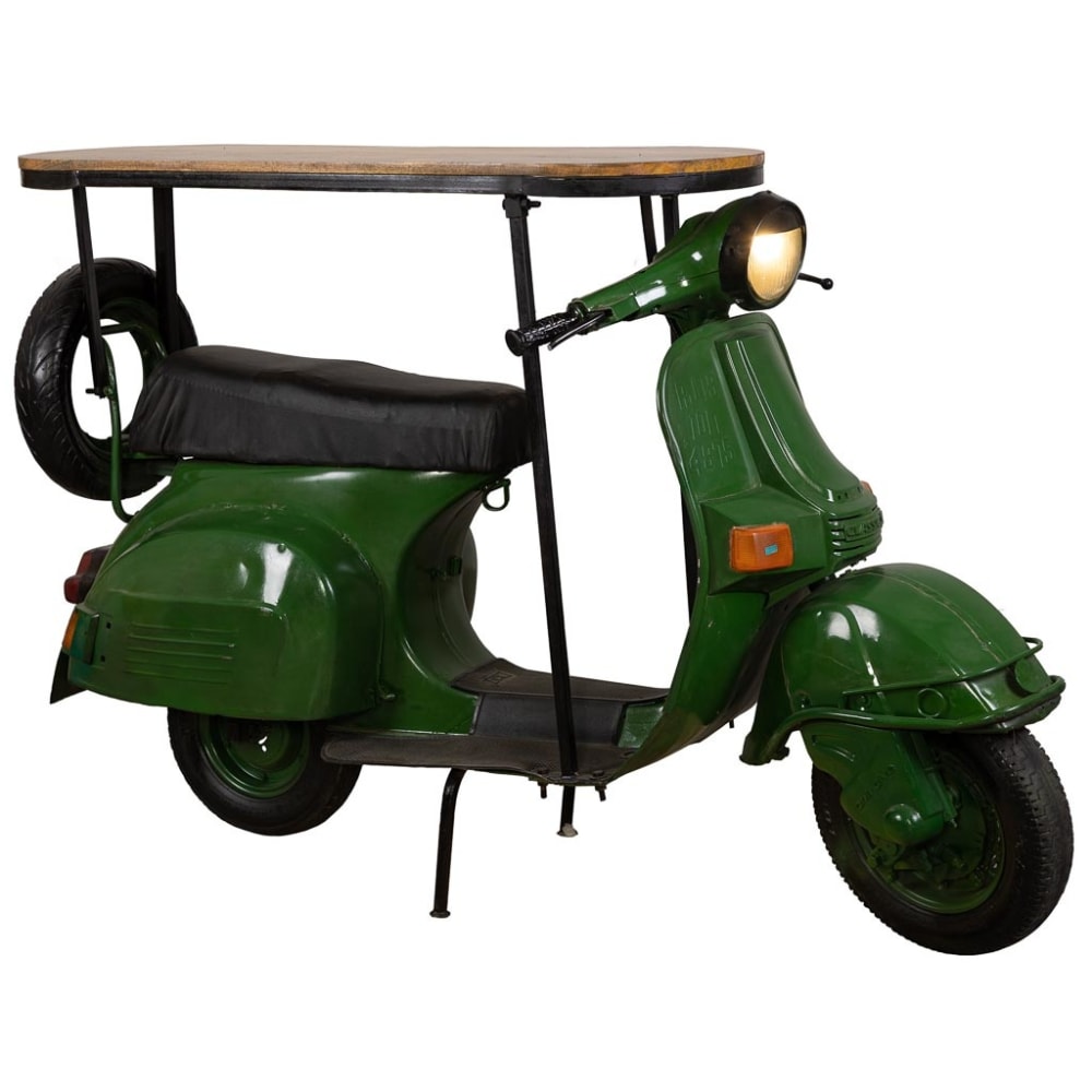 Barra portabottiglie moto Vespain metallo e legno verde 185x66x115h