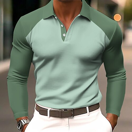Per uomo Blocco di colori Polo Manica Lunga Magliette polo Bavero Business Casual Athleisure Abbigliamento quotidiano Stampa 3D Bottoni Primavera Autunno Blu Blu 1 Blu 2#