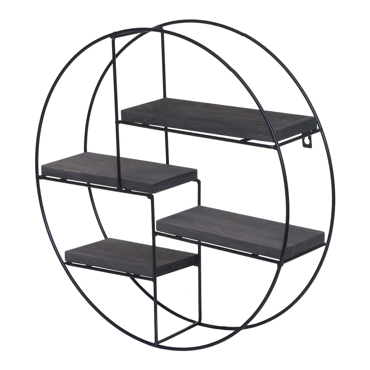 BERLINLODGE Wandregal rund | HxBxT 45x45x11cm | 4 Regalböden Metall Massiv-Holz Industrial | Dunkelgrau| Hängeregal Schweberegal Regal