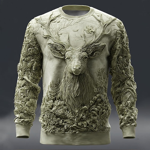 Per uomo Animale Cervo Pile Felpa Moda Casual 3D Collo alla coreana Zip a un quarto All'aperto Vacanza Regalo Abbigliamento casual alla moda Blu Grigio Grigio 2 Mezza cerniera Autunno Inverno