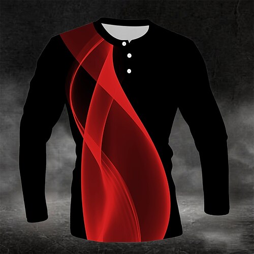 Per uomo Motivo Geometrico Astratto Maglia Henley Manica Lunga Moda Carino Quotidiano Casuale Ferie Uscire Primavera Autunno Tutte le stagioni Bianco Blu Giallo Verde Rosso Henley Maglietta Henley