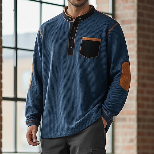 Per uomo Maglia Henley a nido d'ape Maglietta Manica Lunga Henley Inverno Autunno Inverno Tutte le stagioni Tinta unica Semplice Moda Designer Casual Blocco di colore Bottoni All'aperto Casuale