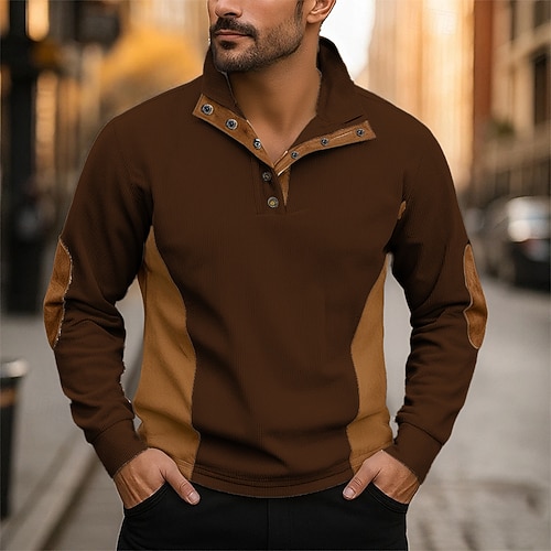 Per uomo Maglia Aalbicocca Nero Bianco Rosso Blu Colletto Mao Blocco di colori Patchwork Sport Outdoor Quotidiano Ferie Poliestere Velluto a coste Streetwear Essenziale Casual Autunno Inverno