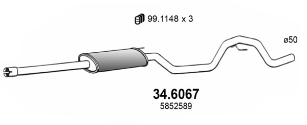 ASSO Mittelschalldämpfer 34.6067 für VAUXHALL OPEL 13228529 5852183 5852589