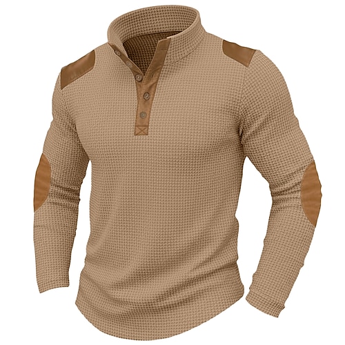 Per uomo Maglietta Maglia Henley a nido d'ape Camicie da uomo con toppe sui gomiti Manica Lunga Blocco di colori Moda Designer Essenziale Patchwork Collo alla coreana Henley Casuale Vacanza Streetwear