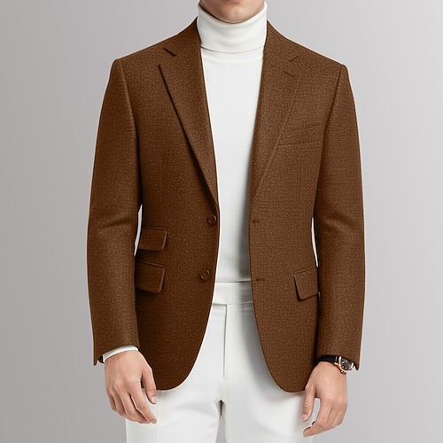 Per uomo Blazer in Tweed Colletto ad incastro Moda Classico Casual Tinta unita Spina di Pesce Blazer Nero Bianco Marrone Vestibilità standard Monopetto Due Bottoni