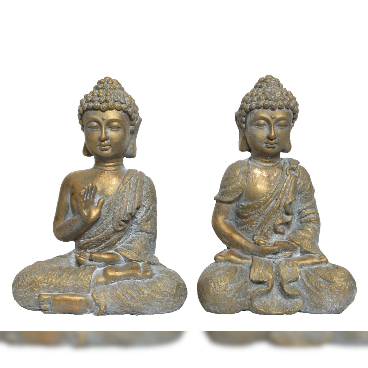 Decoris 1 Buddha Figur 15x21x31cm Kunststein Buddhismus Dekofigur Buddhafigur Dekoration Gartenfigur Gartendeko Gold