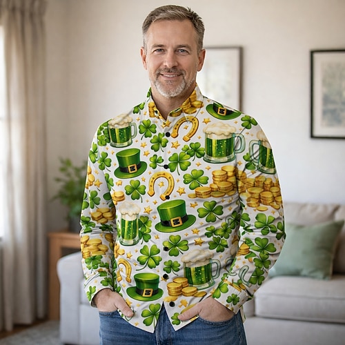 Giorno di San Patrizio San Patrizio Festa di San Patrizio Per uomo Trifoglio Camicia a nido d'ape Maglietta Manica Lunga maglietta Girocollo Camicia Sport Moda Classico Quotidiano Vacanza Feste Nero