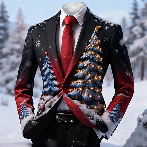 Per uomo Blazer Cappotto Natale Casuale Casual Quotidiano Autunno / Inverno 100% Poliestere Albero di Natale Stampa 3D Bottoni Calore Termico Confortevole Monopetto Giacca Nero Rosso Blu oceano Blu