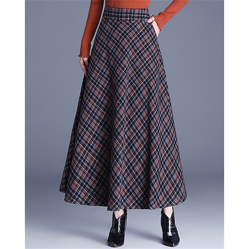 Per donna Gonna scozzese Gonna Lunga Elegante Retrò Vintage Maxi Vita Alta Gonne Plaid Blocco di colori Tasca Lungo Micro-elastico Quotidiano Casual Quotidiano Verde militare Rosso Viola Autunno 100