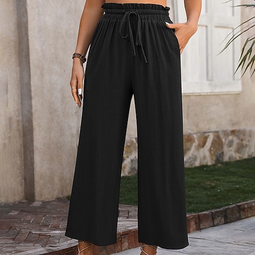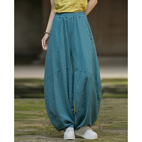 Per donna Pantaloni in cotone e lino Gamba larga Chinos Vacanza Streetwear Casual Lunghezza alla caviglia Vita media Tinta unica Semplice Coulisse Tasca Confortevole Traspirante Micro-elastico