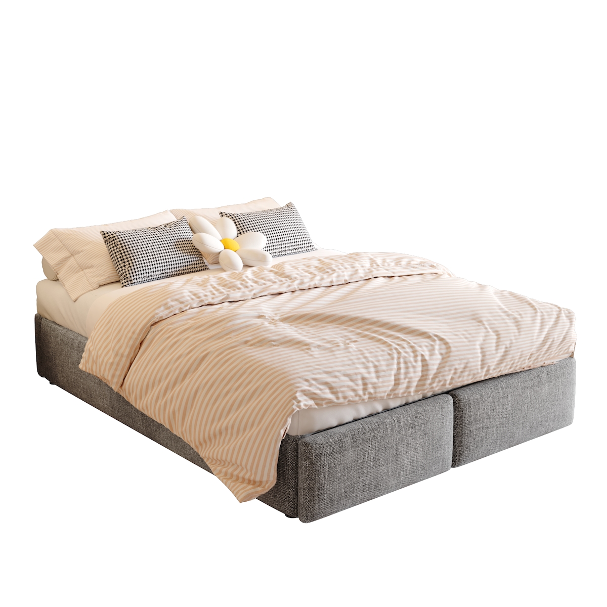 Merax 140*200cm Polsterbett, Plattformbett, Polsterbett ohne Kopfteil, mit hydraulischer Lagerung und 2 Schubladen, Grau
