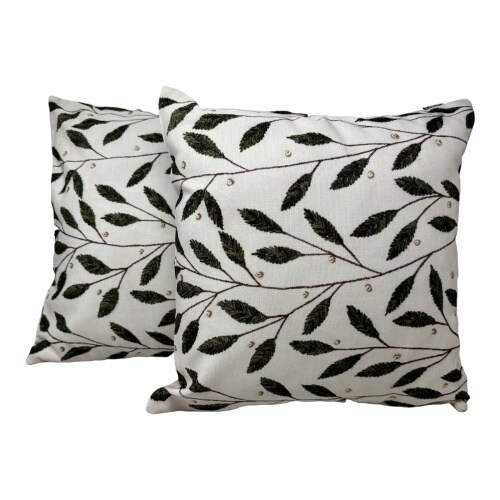 Jet-Line 2-er Deko Kissen Set Sofakissen Oliven Blätter 40x40 cm für In- und Outdoor mit Füllung