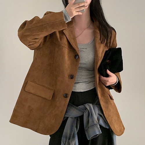 Per donna Blazer Caldo Confortevole Tasca Bottoni Vintage Semplice Formale Vacanza Ufficio Uscire Regolare Collo ripiegato Vestibilità comoda Manica Lunga Capispalla Marrone Cachi Autunno Inverno