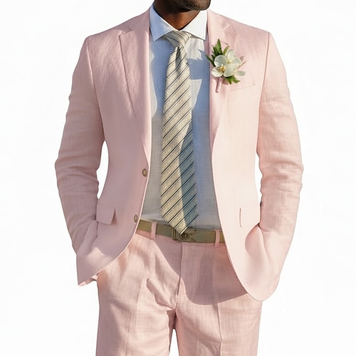 Uomo Casuale Matrimonio in Spiaggia Completi in Lino Bavero classico Nero Bianco Moda Leggero Tinta unita Vestibilità su misura 2 pezzi Monopetto Due Bottoni
