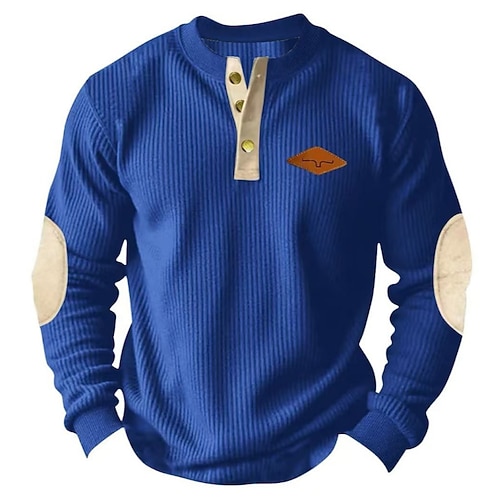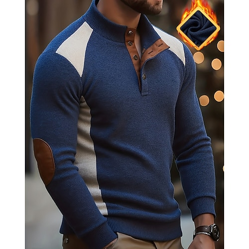 Per uomo Maglia Maglione Blu Henley Blocco di colori Jacquard Sport Outdoor Casuale Quotidiano Streetwear Abbigliamento Sportivo Casual Autunno Inverno Abbigliamento Felpe con cappuccio Felpe