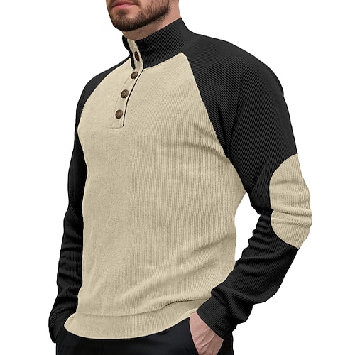 Per uomo Camicia di Velluto a Coste Maglietta Top Henley Manica Lunga Blocco di colori Moda Designer Casual Blocco di colore Bottoni Caldo Henley Casuale Quotidiano All'aperto Autunno Inverno Tutte