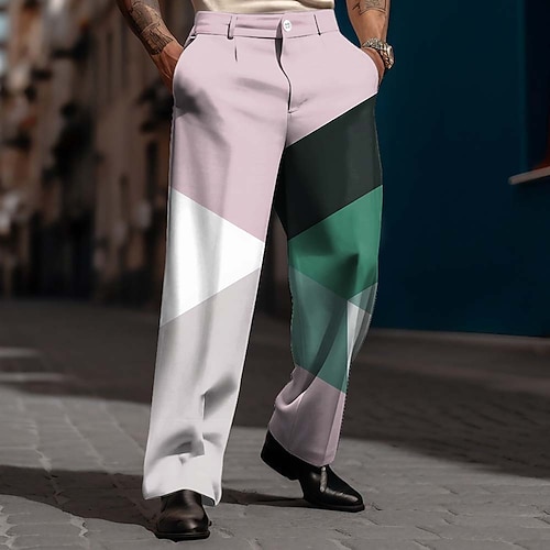 Per uomo Blocco di colori Motivo Geometrico Pantaloni Pantaloni Eleganti Pantaloni da Abito Misura del girovita medio Business Casual All'aperto Abbigliamento Quotidiano Casuale Pantaloni eleganti