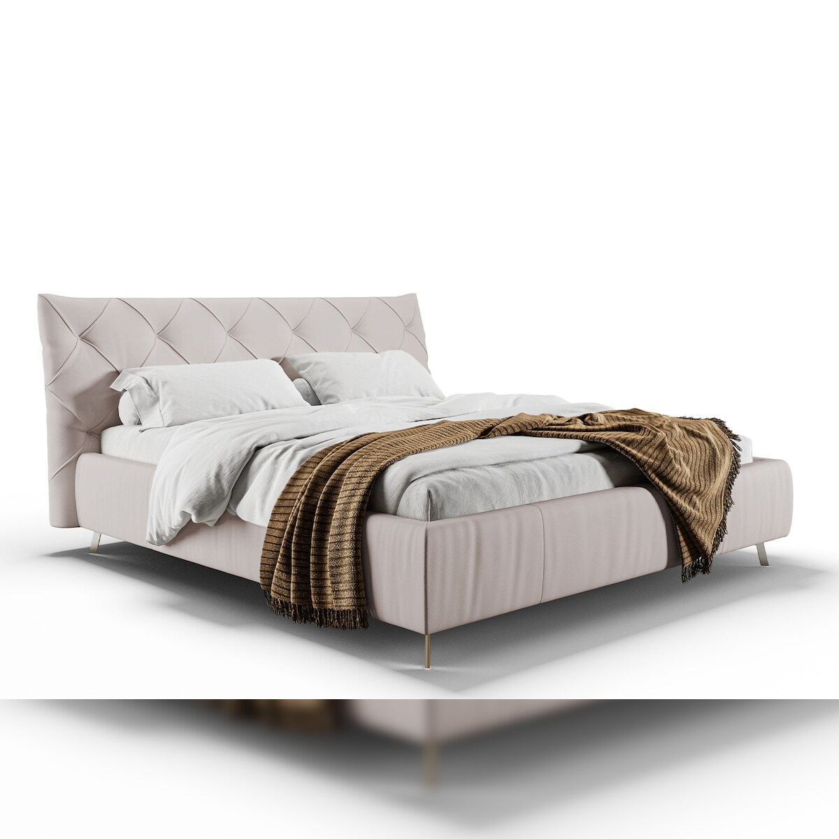 KAWOLA Bett ANNY Polsterbett Kopfteil niedrig Leder hellgrau 140x200cm