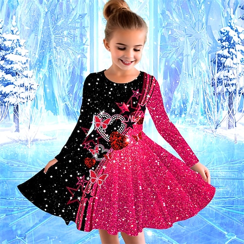 ragazze' 3D Farfalla Stelle Abito Vestito con Volant Manica Lunga Estate Primavera Vacanza Quotidiano Ferie Bello Dolce Bambini 4-12 Anni Vestito Casual Lunghezza al ginocchio Vestibilità regolare