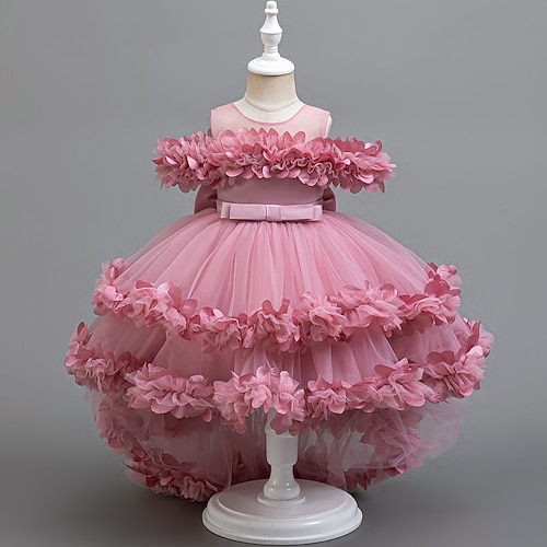 Bambino Da ragazza Vestito da festa Fiore decorativo Senza maniche Prestazioni Compleanno Bellissimo Dolce Poliestere Asimmetrico Vestito da festa Vestito svasato Abito linea A Estate 4 anni
