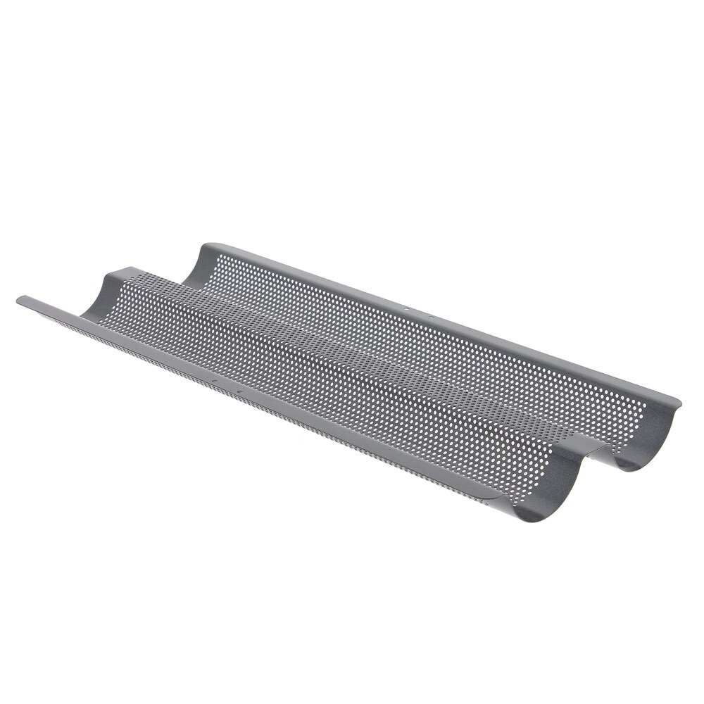 Perforiertes Backblech für 2 Baguettes - Grau Rectangle Inox Antihaftbeschichtet De Buyer 37x16.5 cm