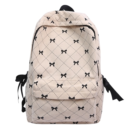 zaino con motivo a fiocco nero per ragazze – grazioso zaino scolastico in velluto a coste con dettaglio di nastro laterale per studentesse adolescenti e uso quotidiano