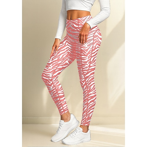 Per donna leggings da pilates Pantaloni fitness Leggings da palestra Tasche Bollo Tasche Laterali Pilates Palestra Allenamento in Palestra Pantaloni Collant Leggings Con Motivo Animale Rosa Viola