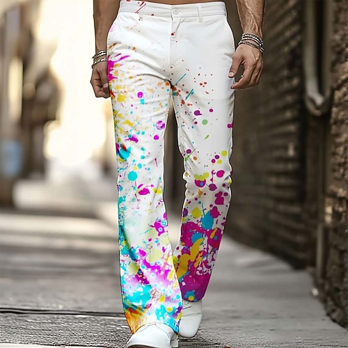 Per uomo Motivo Geometrico Inchiostro splash Pantaloni Pantaloni da discoteca Pantaloni a zampa d'elefante anni '60 e '70 Misura del girovita medio Casual All'aperto Abbigliamento casual alla moda