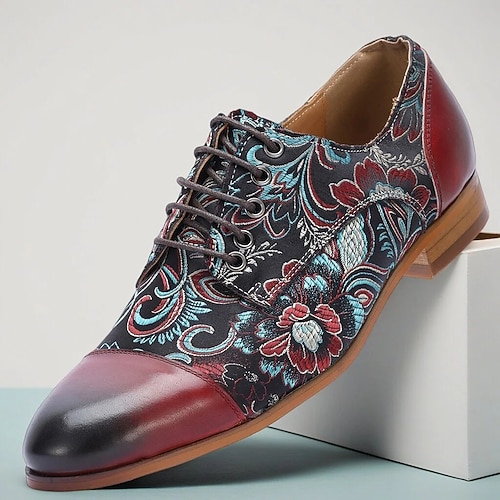 scarpe stringate da uomo in pelle nera con motivo floreale: calzature alla moda per incontri semi-formali, feste serali e abbigliamento casual alla moda